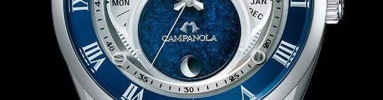 宇宙船の窓に見立てた6時位置のサブダイヤルは、「紺瑠璃」では青漆で地球を表現している。