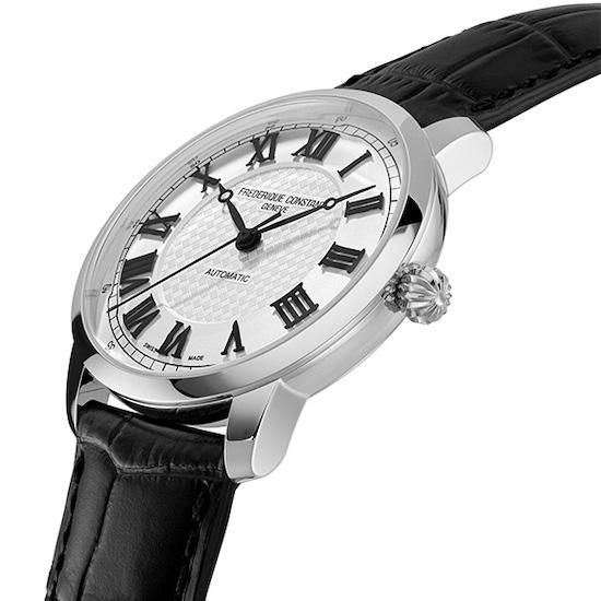 クラシカルエレガントを象徴するベーシックモデル。クリスタルケースバックからは搭載したラジューペレのムーブメントが覗きます。時・分針はブレゲ針、カーブする文字盤に沿うようにローマン数字インデックスを植字、中央には段差をつけてギョーシェ装飾をあしらいました。奥行のある凝った仕上げを施した上品なクラシカルウォッチです。