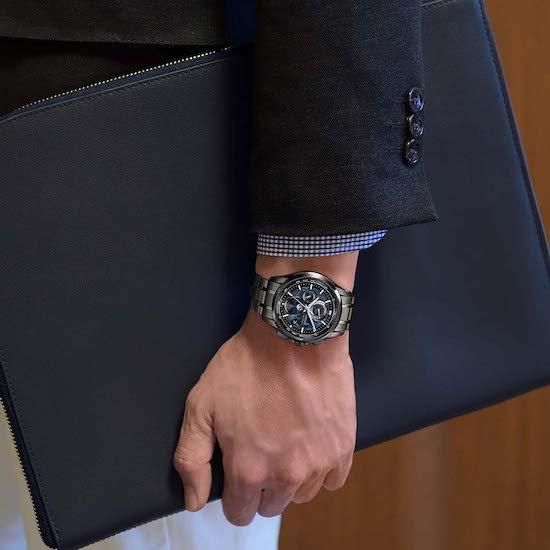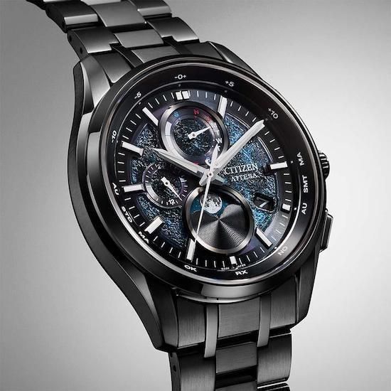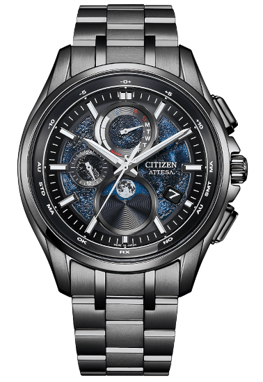民間月面探査プログラム「HAKUTO-R」が目指す月をコンセプトにデザインした、月齢自動計算機能「ルナプログラム」搭載の限定モデル。静寂な夜に青い光を放つ月の様子をイメージ。