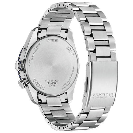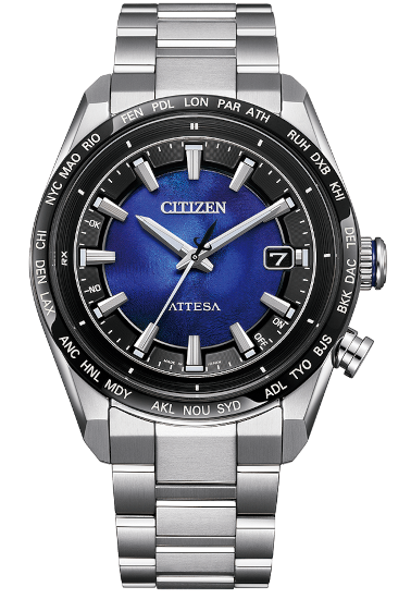 より深く、より静かに、より青く。“青の時、ひとつの世界。”をコンセプトに、光の反射で様々な表情を見せる構造色文字板で海の揺らめきを表現。光発電エコ・ドライブや文字板に再生素材を使用し、地球環境にも配慮しています。