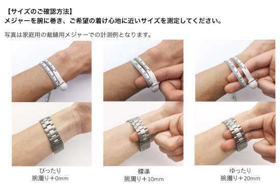 測定結果に近い「時計装着サイズ」をご選択ください。